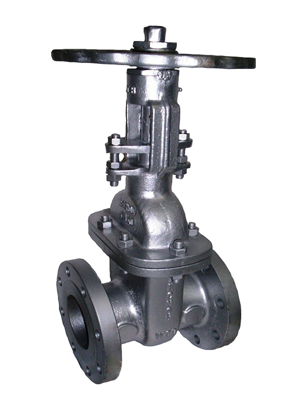 Válvula GAVETA, haste ascendente com rosca externa, castelo aparafusado, volante fixo.